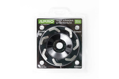 Характеристики Чаша алмазна шліфувальна 125мм 22-24% Бумеранг APRO