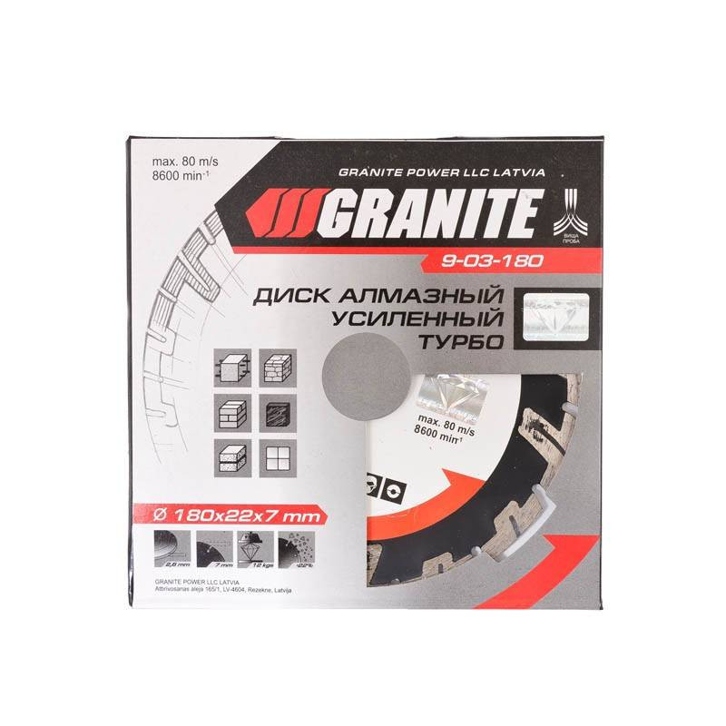 Характеристики GRANITE Диск алмазный TURBO REINFORCED 180 мм GRANITE, Арт.: 9-03-180