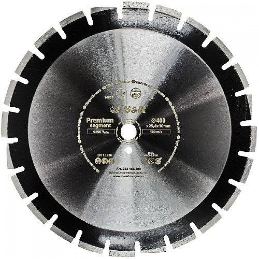 О продукте Диск алмазный отрезной S&R 400 x 25,4 асфальт PREMIUM SEGMENT