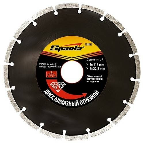 Характеристики Диск алмазний відрізний сегментний, 150 х 22,2 мм, сухе різання, SPARTA