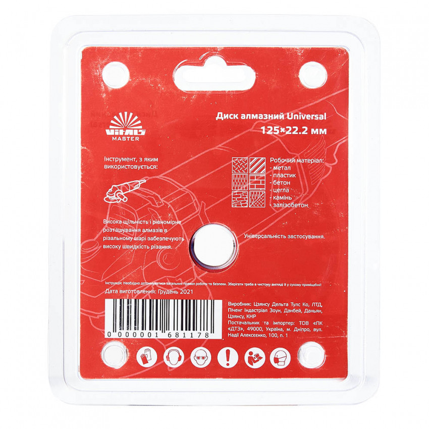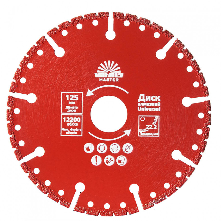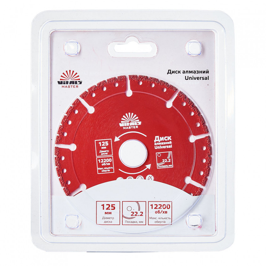 Диск алмазний Vitals Master Universal 125 мм призначений для роботи з будівельними матеріалами різної щільності, а саме: метал, пластик, бетон, цегла, камінь, залізобетон.