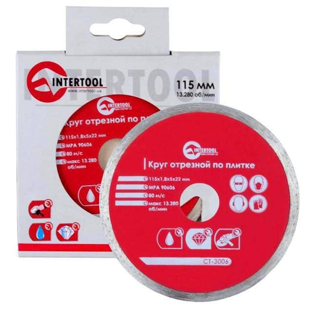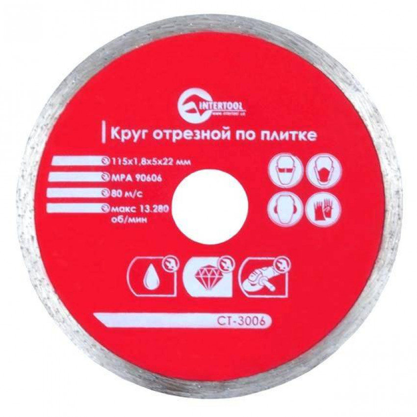 Диск отрезной алмазный по плитке, со сплошной кромкой, 115 мм, 22-24% INTERTOOL CT-3006