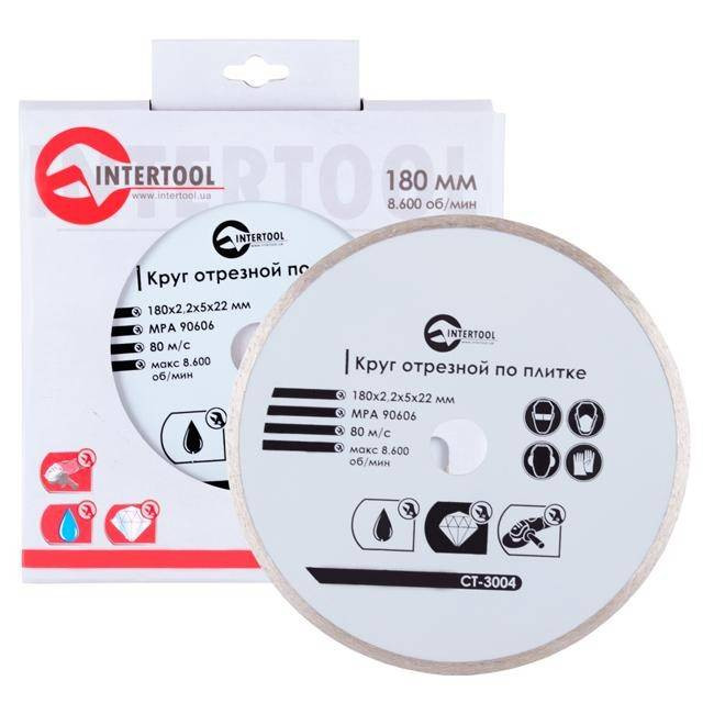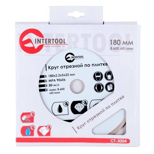 Диск отрезной алмазный по плитке, со сплошной кромкой, 180 мм, 16-18% INTERTOOL CT-3004