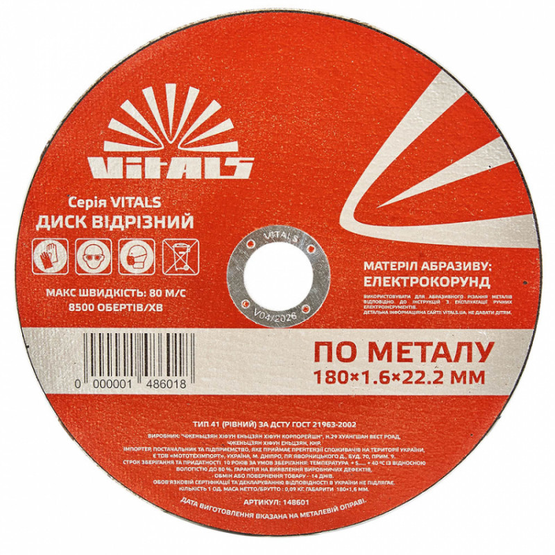 О продукте Диск отрезной по металлу Vitals 180х1.6х22.2 мм