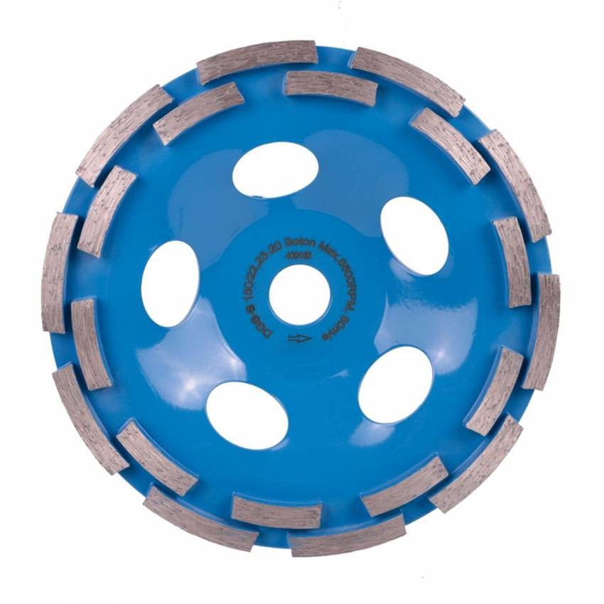 В ассортименте фреза Beton представлена в различных наружных диаметрах, в частности, 100, 125, 150 и 180мм, алмазный слой для всех одинаковый в 6мм, а также посадочное гнездо 22,23мм для работы на УШМ любого типа с соответствующим посадочным местом.