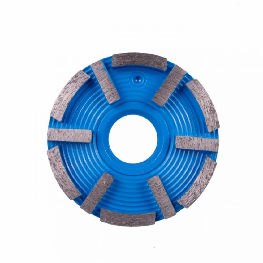 12 Т-образных сегментов с зернистостью N00/30 размещенных на корпусе алмазной шлифовальной фрезы сводит к минимуму появление сколов и раковин, на поверхности обрабатываемого материала. Фреза предназначена для работы с бетонами низкой и средней прочности, в редких случаях обрабатывают высокопрочный бетон. Для бетона повышенной прочности рекомендуется использовать фрезы GS-W No0.