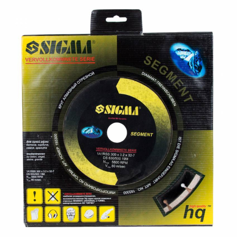 Круг алмазный сегмент HQ Ø300мм Sigma 193300z предназначен для сухого реза кирпича, черепицы, шифера, высокопрочного бетона.
