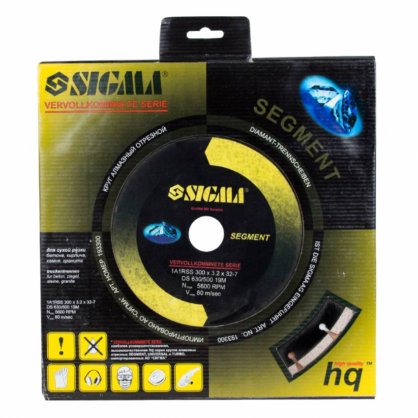 О продукте Круг алмазный HQ сегментный Ø300х25.4мм, 4300об/мин Sigma (193300z)