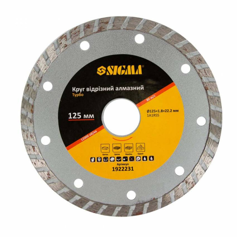Отзывы Круг отрезной алмазный "Турбо" Ø125х1.8х22.2мм, 12000об/мин Sigma (1922231)