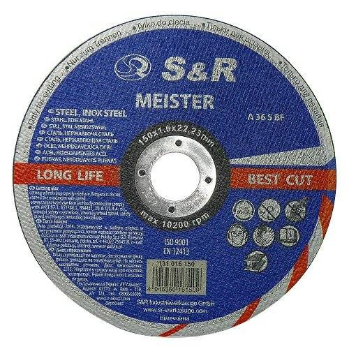 О продукте Круг отрезный S&R Meister 150x1.6x22.2 мм A36S BF мет/нерж.